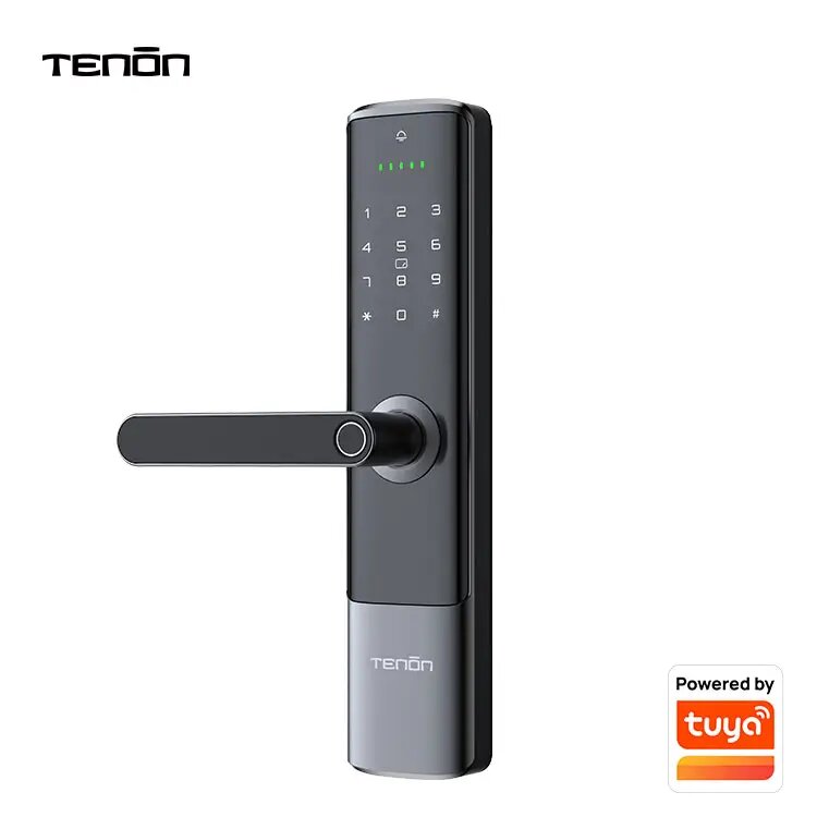 Электронный смарт замок «Tenon K6» обеспечивает пользователям подключение к платформе tuya IOT и поддерживает протокол. Система смарт замка Tenon объединена с платформой Tuya IOT, обеспечивая удобный вход в ваш дом без ключа с помощью мобильного телефона, отпечатка пальца, карты или пароля.